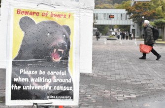 The prefectural police are also spreading awareness, deploying patrol cars and broadcasting bear warnings via loudspeakers in four languages including English and Chinese.