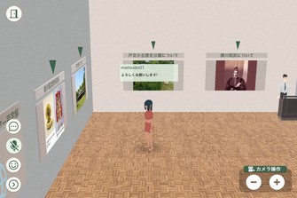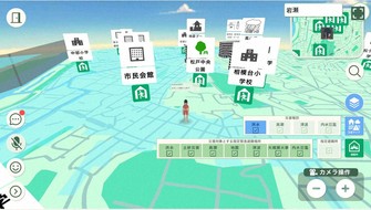The cultural properties map allows users to explore local cultural assets. Meanwhile, the disaster prevention map displays evacuation shelters and areas designated for potential disasters such as floods and storm surges. There are also virtual meeting rooms where avatars can converse.