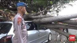 Pohon yang tumbang menimpa sebuah mobil yang tengah melintas. Beruntung tak ada korban dalam insiden ini.