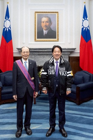 Oh, chairman of the SoftBank Hawks, received the Order of Brilliant Star with Special Grand Cordon from Lai at his office in Taipei, where exhibition games between Taiwanese and Japanese baseball teams are underway ahead of the World Baseball Classic in March.